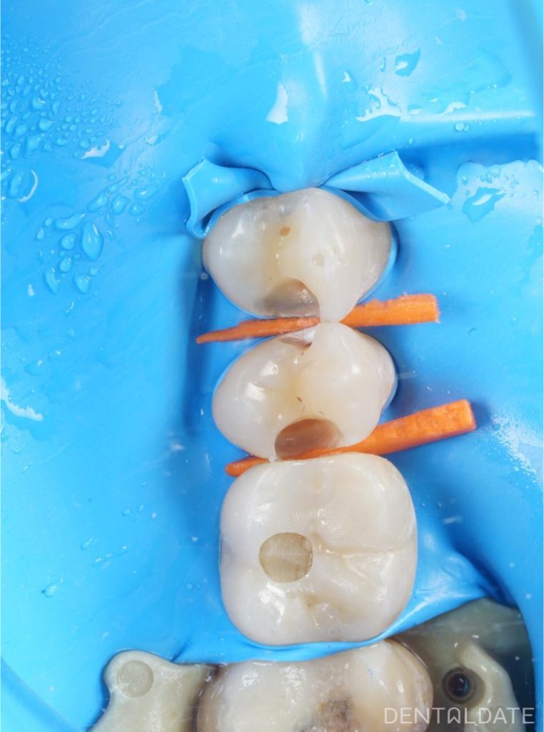Caries was detected on the contact surfaces of teeth 1.4 and 1.5, 2.4 and 2.5, as well as old fillings, their depressurization, secondary caries.