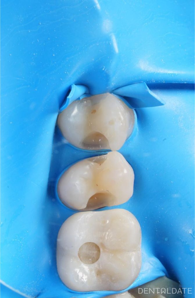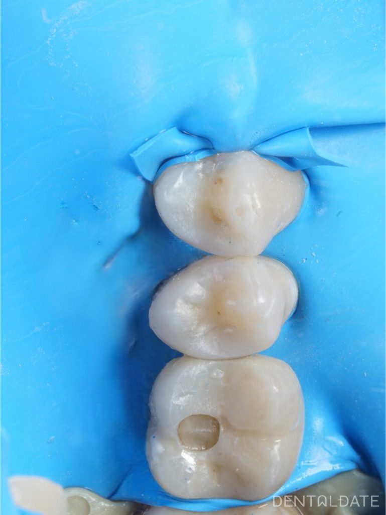 After infiltration anesthesia, a rabberdam was placed. Under the microscope delicately dissected caries-affected tissues, old composite fillings, maximally preserving healthy tooth tissues.