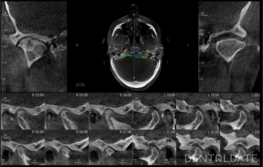 Diagnostic examinations, including MRI and CT scans, confirmed the presence of osteoarthritis in the right TMJ. To further assess the condition of the joint, condylography was performed. Based on the findings, a decision was made to perform decompression of the right TMJ using a custom-made therapeutic splint.