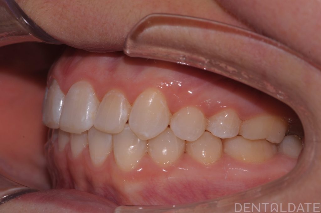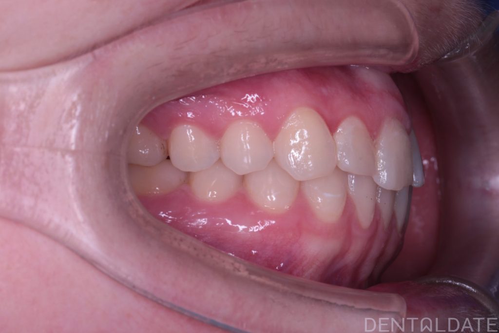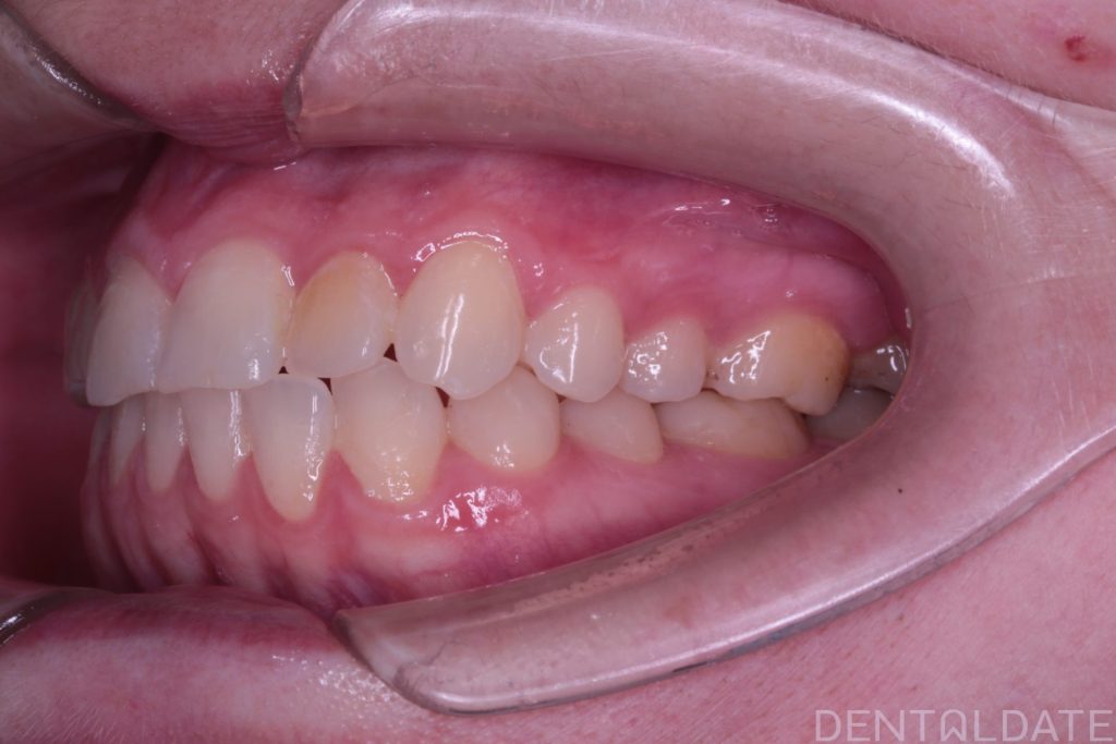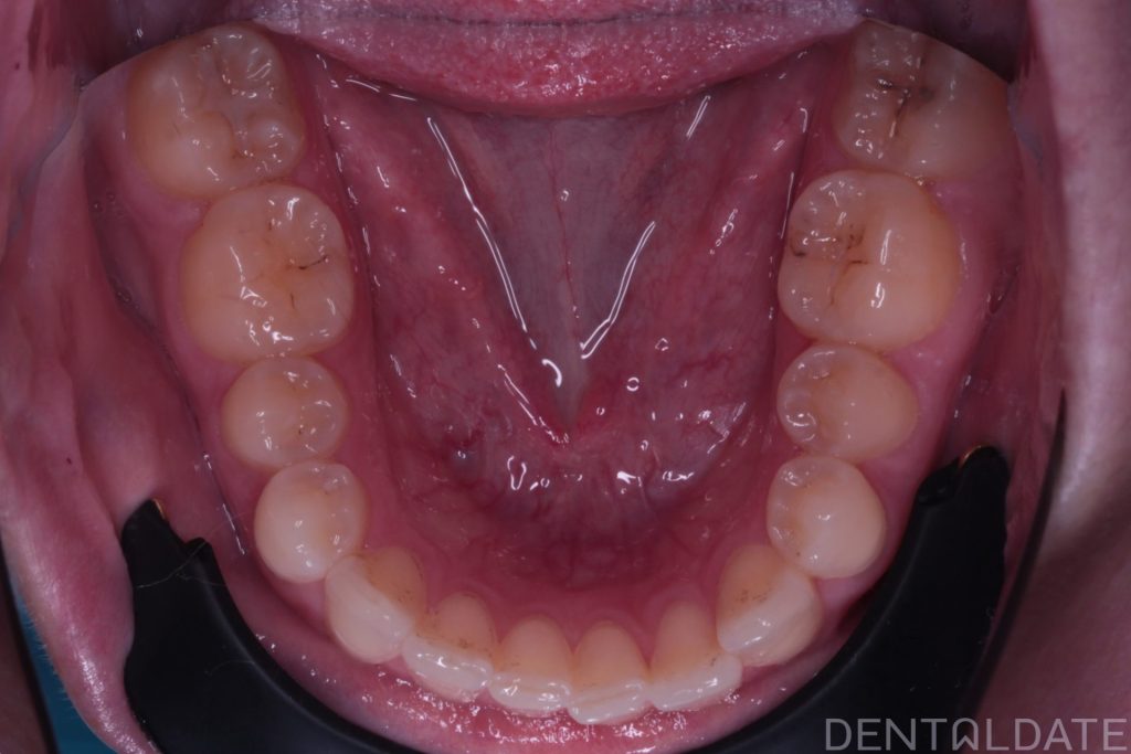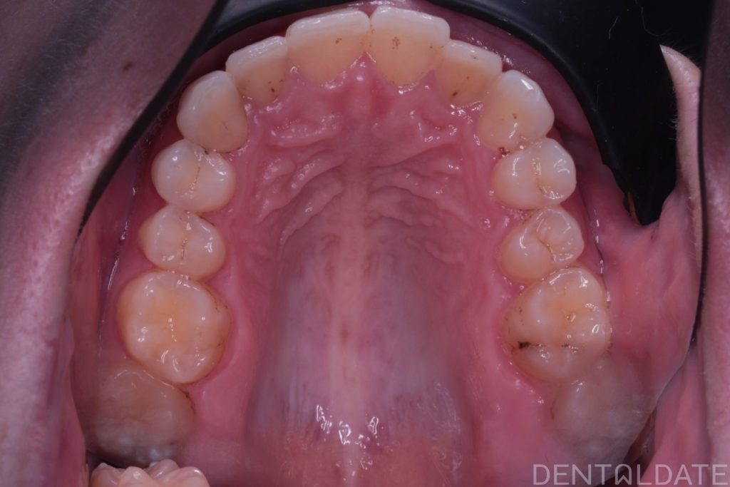 The patient had previously undergone treatment with braces, but retainers to stabilize the teeth were not placed.