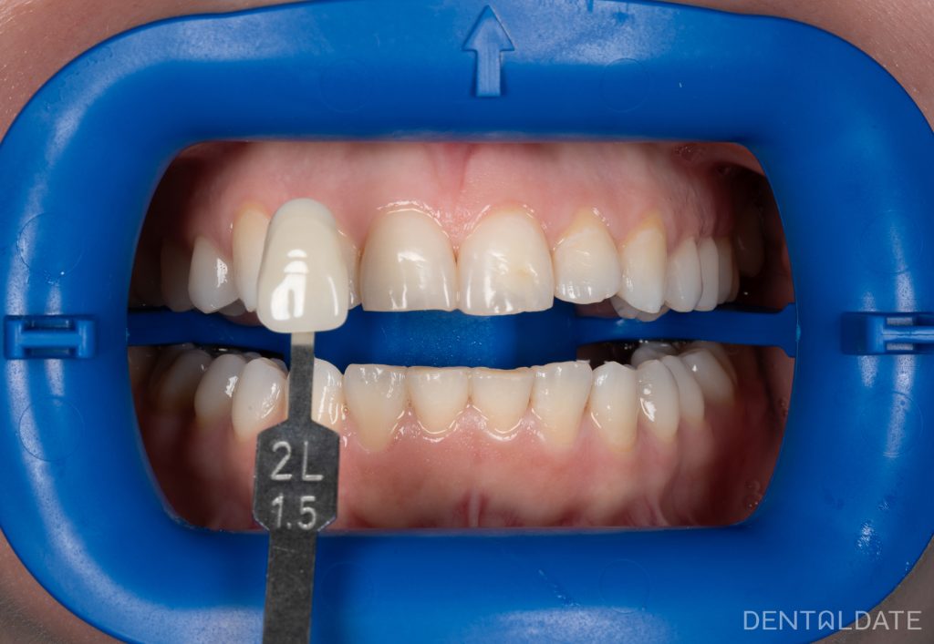 The patient went to the clinic with an aesthetic defect: she was not satisfied with the colour of her teeth.