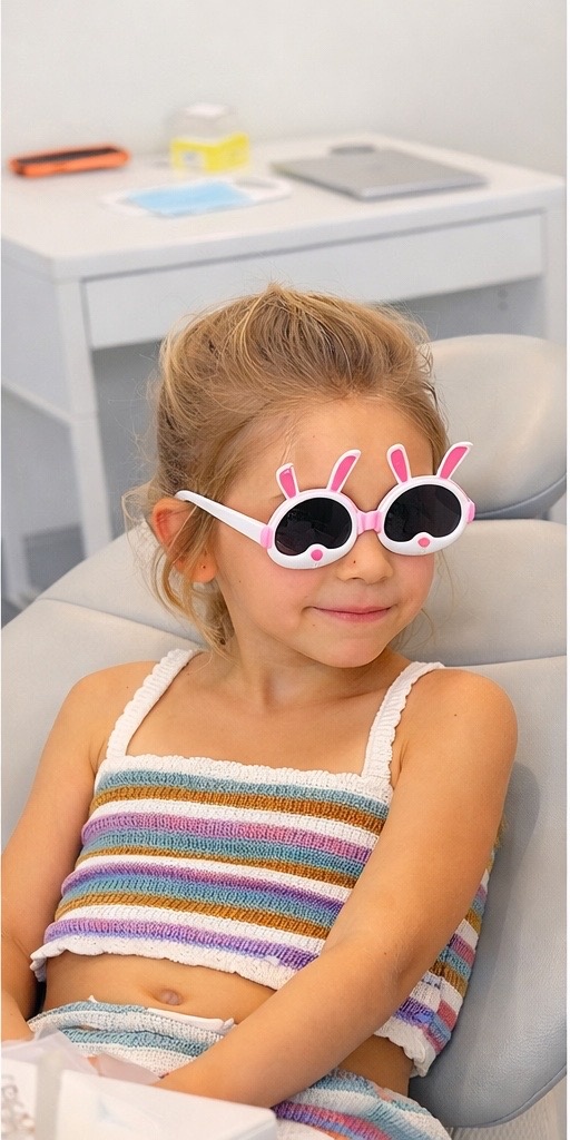 The dentist evaluates the treated area and provides post-procedure guidance. The process is completed efficiently, without pain or discomfort, allowing the child to remain calm throughout the visit.